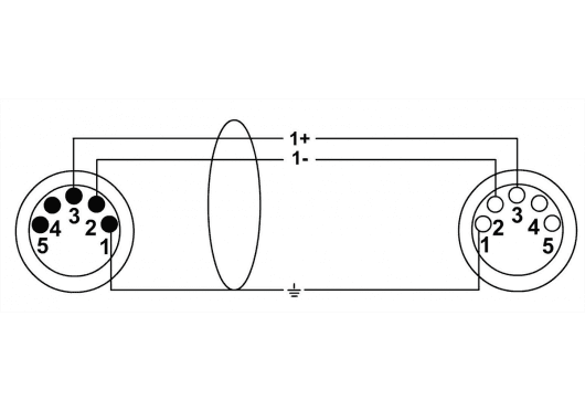Cable para control de sistemas de iluminación DMX512, con una longitud de 5 metros. Incorpora conectores XLR metálicos de 5 pines (macho/hembra) marca Neutrik. El cable posee una impedancia característica de 110 ohmios, conforme al estándar AES/EBU y EIA RS-485. Cuenta con doble apantallamiento mediante lámina de aluminio y malla de cobre estañado en espiral. Los conductores internos tienen una sección de 0.22 mm² (AWG 24) y el diámetro exterior del cable es de 4.5 mm, con un revestimiento de PVC de alta resistencia.