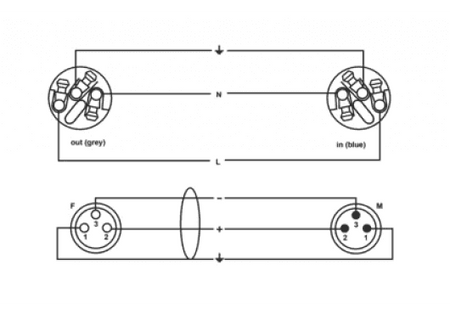 Fabricado en Alemania, este cable utiliza componentes de la más alta calidad para garantizar una fiabilidad y durabilidad excepcionales. Está equipado con conectores Neutrik originales, reconocidos mundialmente por su robustez y conexión segura. La sección de alimentación cuenta con los conectores PowerCON NAC3FXXA-W-S (entrada) y NAC3FXXB-W-S (salida), mientras que la señal DMX se transmite a través de conectores XLR de 3 pines (NC3MXX y NC3FXX). La combinación de ambos cables permite alimentar equipos de iluminación y controlarlos simultáneamente, ideal para conectar en cadena (daisy chain) cabezas móviles, focos LED y otros dispositivos DMX.