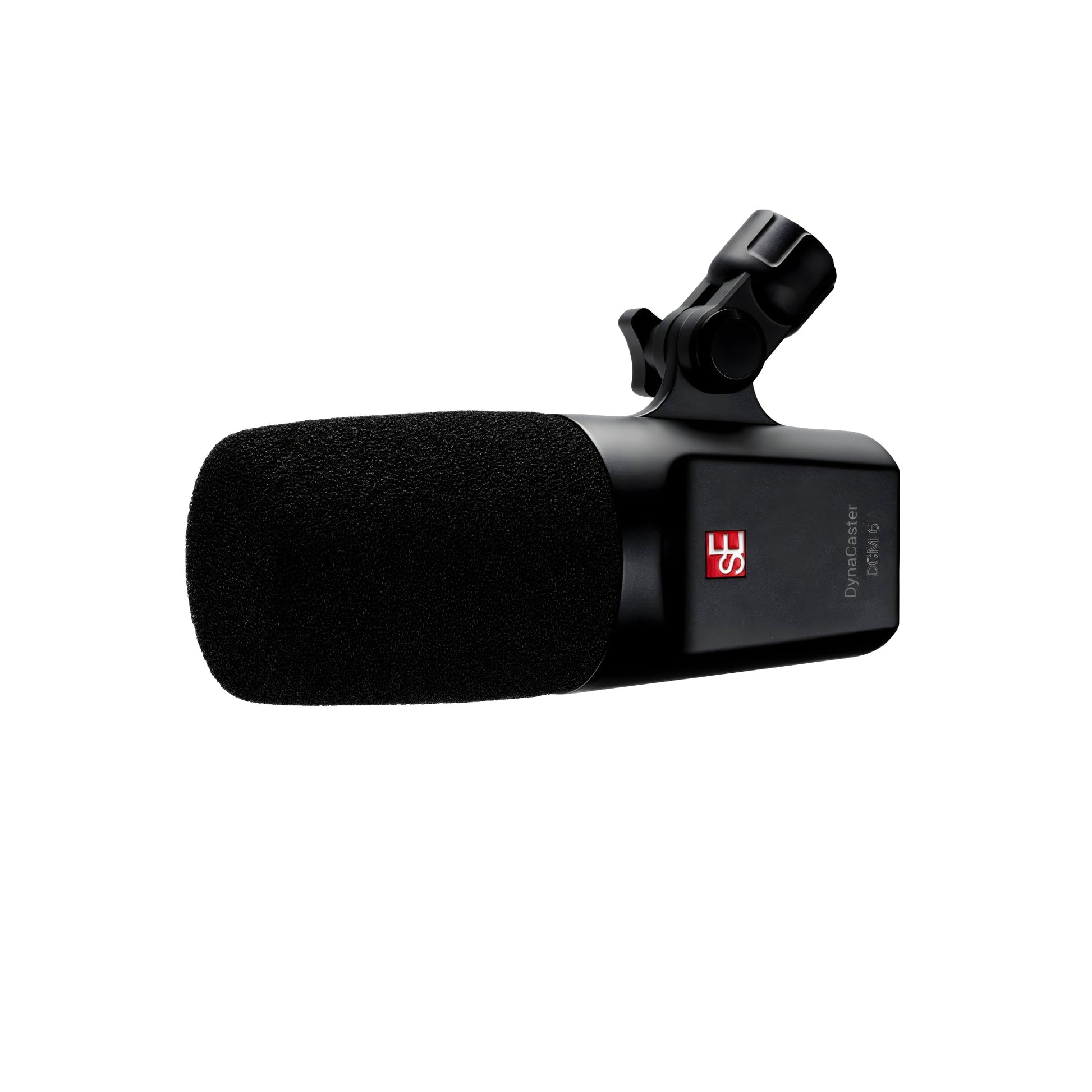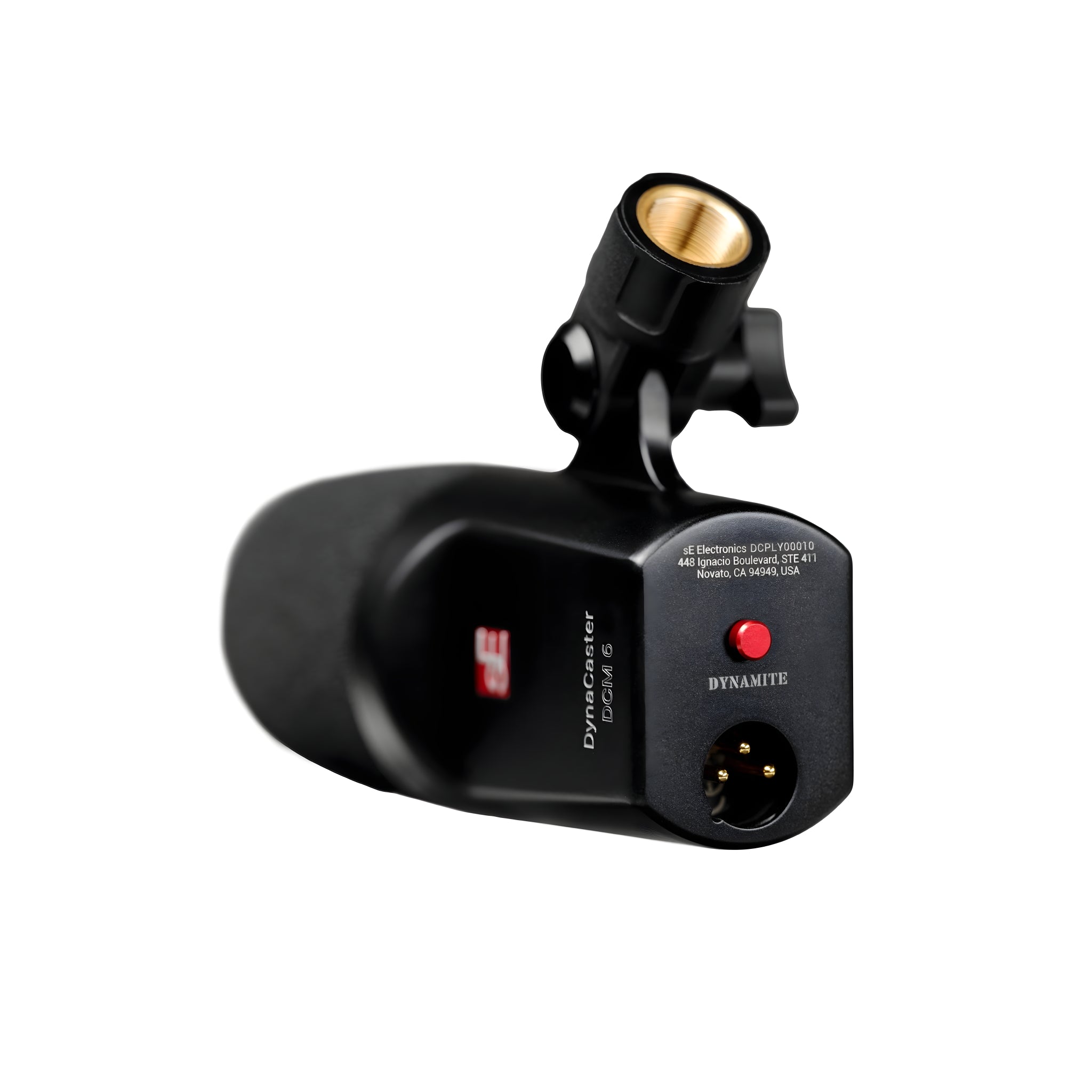 Micrófono dinámico sE Electronics DynaCaster DCM6, cardioide front-address, +30 dB de ganancia DYNAMITE, 40 Hz–18 kHz, filtro antipop integrado, shockmount patentado, adaptador giratorio, XLR dorado, phantom 48 V.