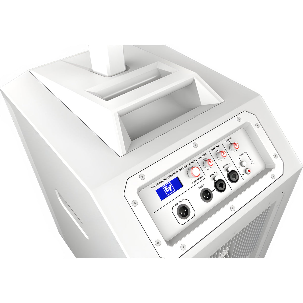 El Electro-Voice EVOLVE50-KW es un sistema de PA de columna de tres piezas que combina un subgrave de 12" (recinto de contrachapado de 15 mm), una columna con 8 transductores de 3,5" (neodimio) y un poste de aluminio con cableado interno y bloqueo magnético. La amplificación Clase D de 1000 W (500 W LF + 500 W columna) y la gestión QuickSmart DSP ofrecen sonido de nivel profesional con respuesta (-3 dB) 43 Hz–20 kHz, SPL máx. 127 dB y cobertura 120° × 40°. El conjunto incluye bolsa de transporte para la columna y el poste para un despliegue rápido en eventos móviles y alquiler.