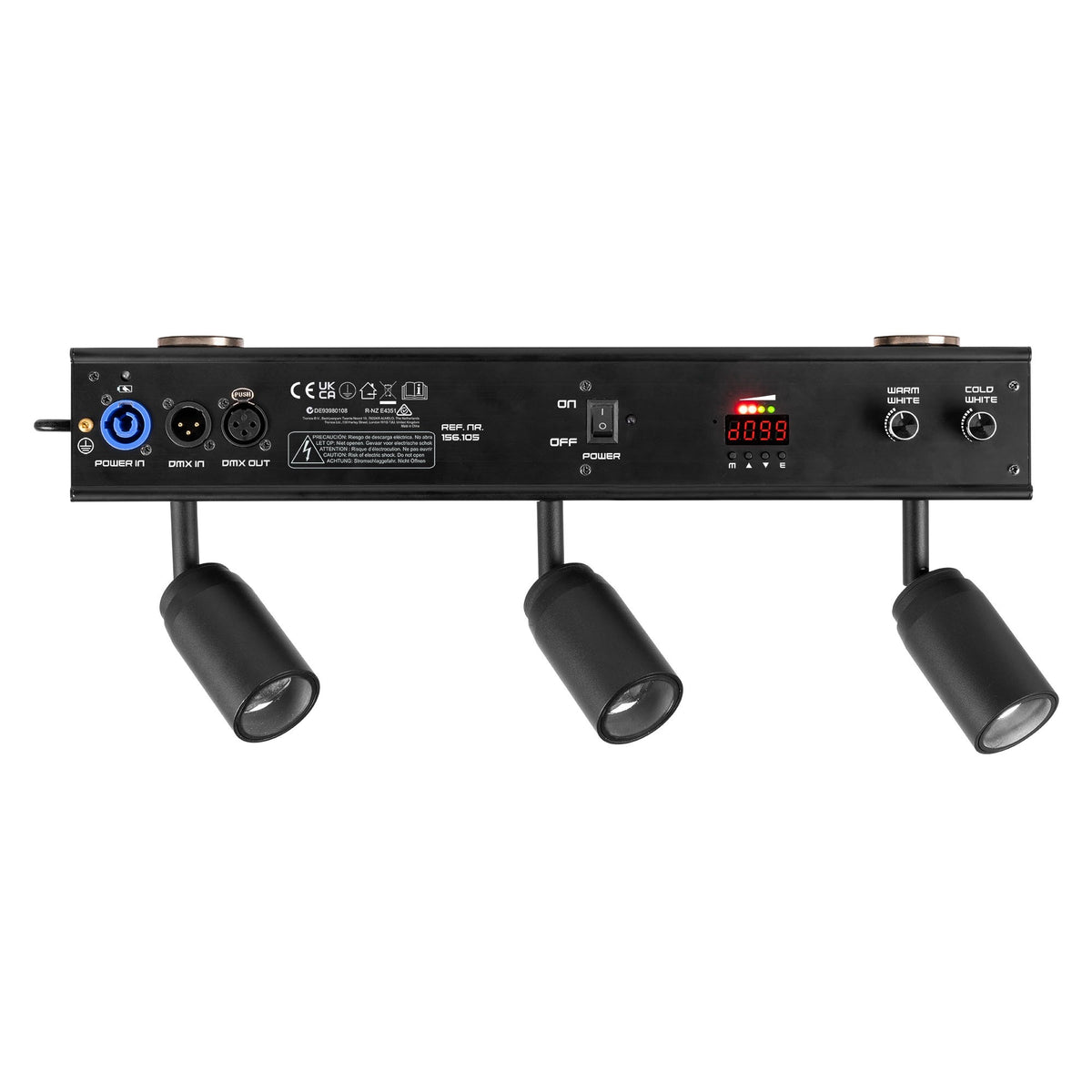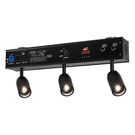 El cuerpo integra dos imanes potentes para fijación instantánea sobre superficies metálicas, además de entrada P-Con y DMX de 7 canales por XLR de 3 pines para quien requiera integración en sistemas de control. La refrigeración por convección mantiene un funcionamiento silencioso y la pantalla LED facilita los ajustes en modo autónomo, automático, maestro/esclavo o sound-to-light. Todo ello en un formato robusto para interior (IP20) con peso contenido y un flujo de trabajo optimizado.