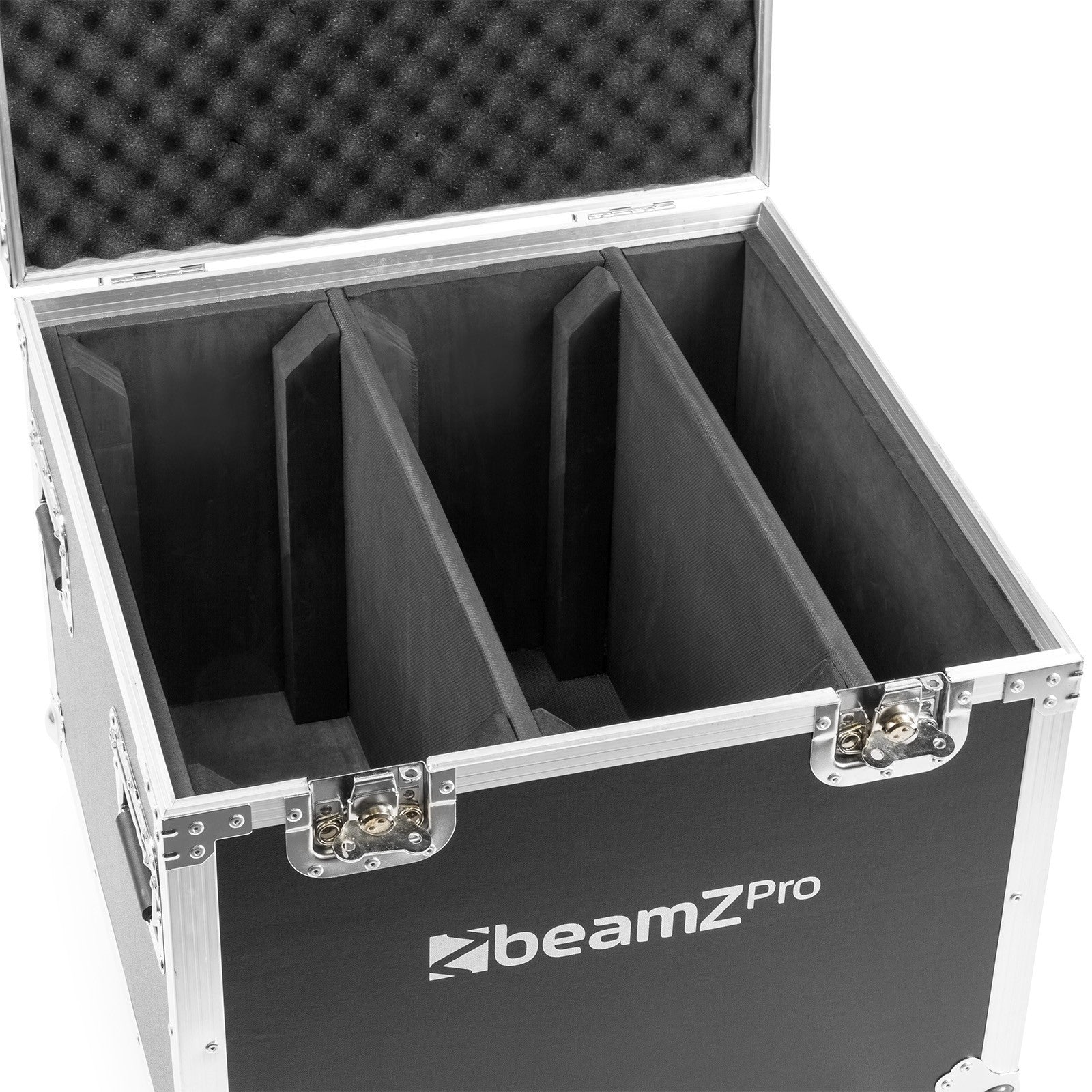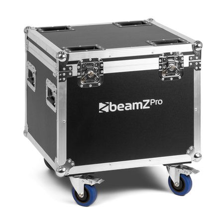 Flightcase profesional beamZ Pro FLC12802 para 2 bañadores de color StarColor1280, con estructura rígida reforzada con perfiles de aluminio, esquinas de bola metálicas, cierres de palomilla tipo mariposa, asas retraíbles, ruedas de transporte integradas e interior de espuma dura a medida. Acabado en color negro, dimensiones aproximadas 650 x 590 x 590 mm (L x An x Al) y peso aproximado 15 kg.