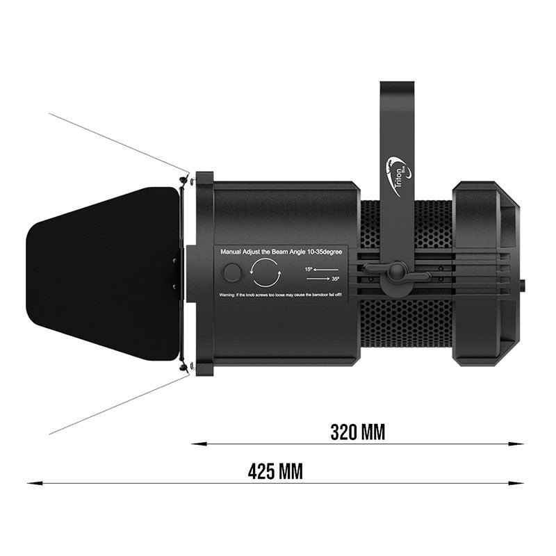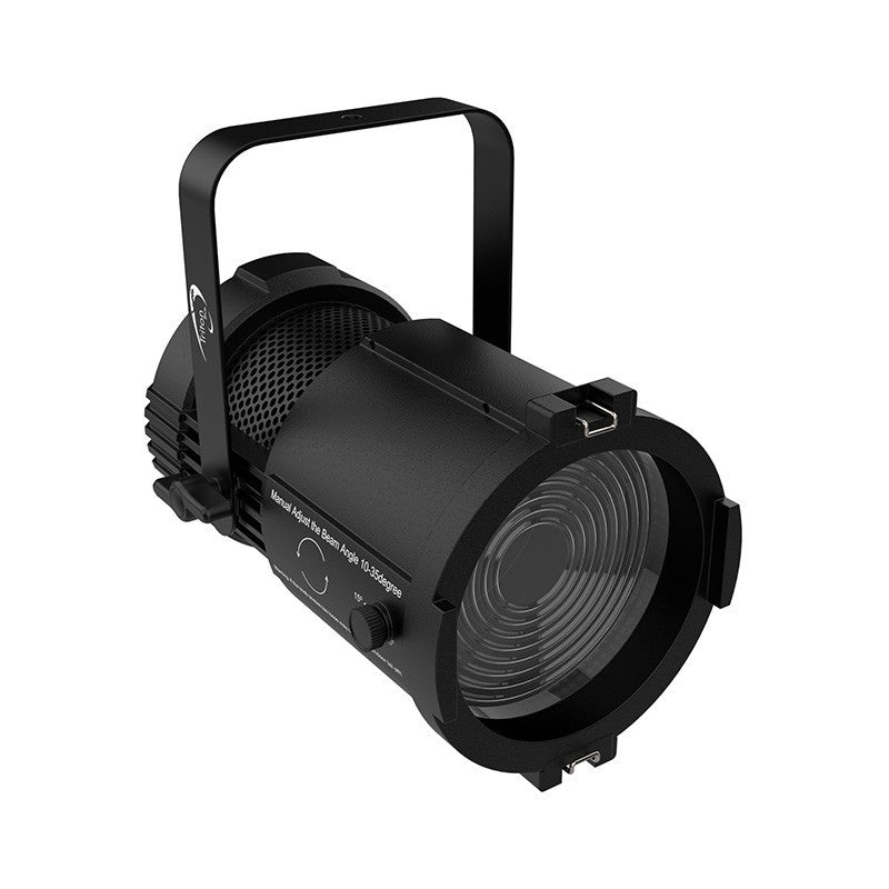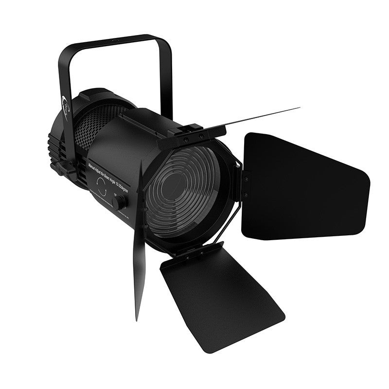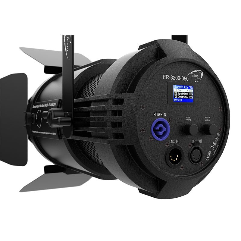 Triton Blue FR-3200-050 Stellar 50 – Fresnel LED bicolor 50 W (3200–6500 K) con zoom manual 10°–35°, lente 150 mm e incluye visera