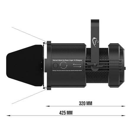 - Versatilidad en un solo foco: de key concentrado a fill suave con el zoom 10°–35°.