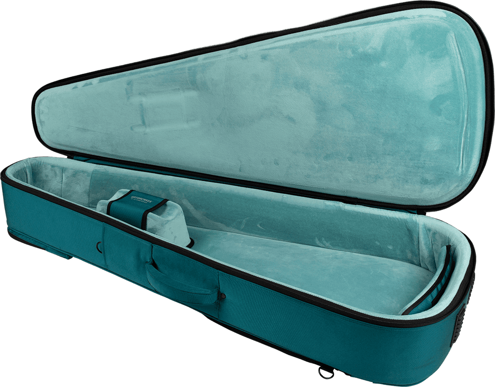 La carcasa multicapa incorpora espuma de aproximadamente 30 mm de grosor y un diseño envolvente que mantiene la guitarra firmemente sujeta, protegiendo tanto el cuerpo como el mástil y la pala frente a golpes y cambios de temperatura. El interior en microfibra/microterciopelo de tacto muy suave cuida el acabado del instrumento, ya sea brillante, satinado o en madera natural, evitando arañazos al meter y sacar la guitarra.