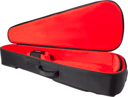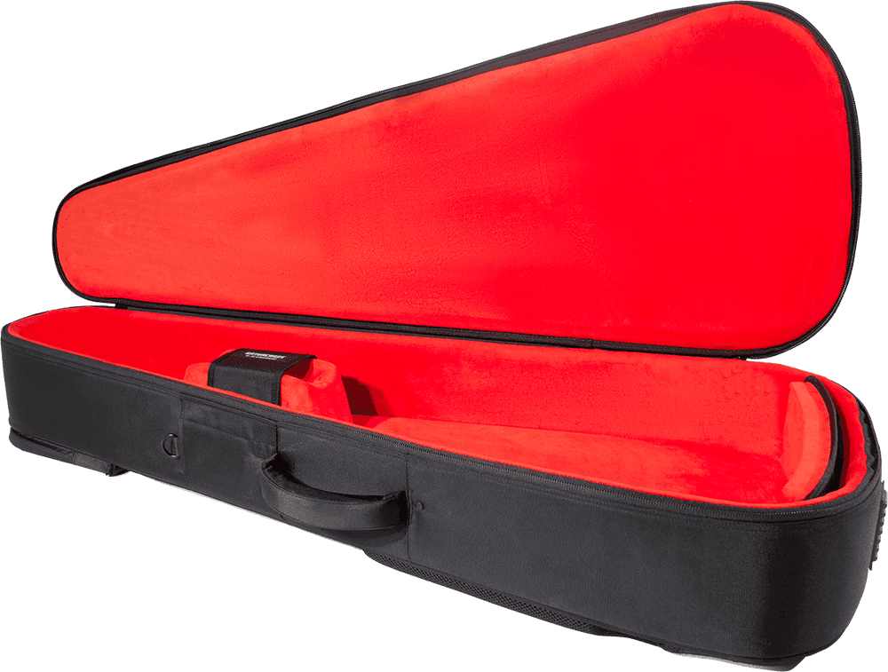 Su estructura está formada por varias capas de refuerzo que permiten que la funda mantenga la forma incluso vacía, protegiendo la guitarra frente a golpes, presión lateral y vibraciones durante el transporte. El interior acolchado con bloques de apoyo ajustables incluye un soporte de mástil extraíble y regulable con cierre de velcro, así como bloques de cuerpo interiores que se adaptan a la guitarra para mantenerla firme y evitar movimientos en el interior. El acabado en microterciopelo rojo cuida el barniz y los cantos, evitando arañazos y rozaduras.