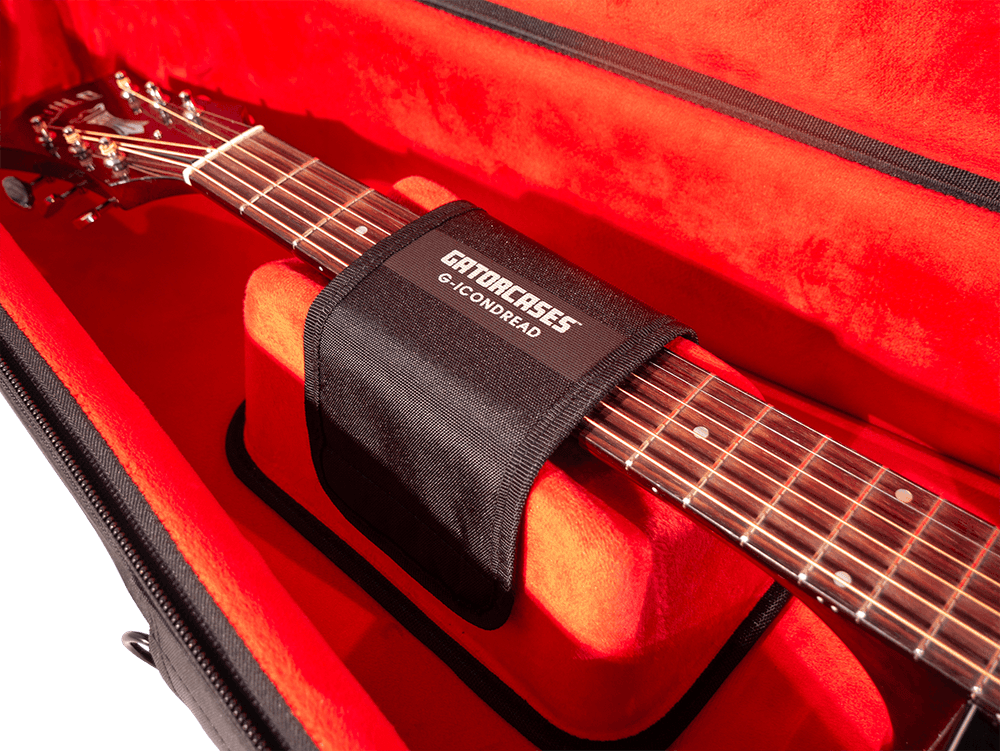 La Gator G-ICONDREAD pertenece a la serie ICON, la gama de fundas premium de Gator. Su exterior de nylon 1000D negro ofrece una gran resistencia a la abrasión, al desgarro y a las condiciones meteorológicas adversas. El interior está completamente revestido en microterciopelo rojo, con acolchado semirrígido multicapa que mantiene la estructura aun cuando la funda está vacía. El sistema de bloques de apoyo interiores (para cuerpo y mástil) permite ajustar el soporte al instrumento, mientras que los topes de goma y las asas acolchadas reforzadas aseguran una larga vida útil incluso con trato intenso.