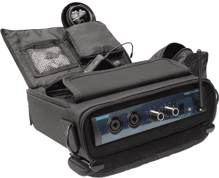 - Almacenamiento Organizado: Compartimentos dedicados para el transmisor, los auriculares, la petaca receptora (bodypack) y la fuente de alimentación, manteniendo todo en su lugar.
