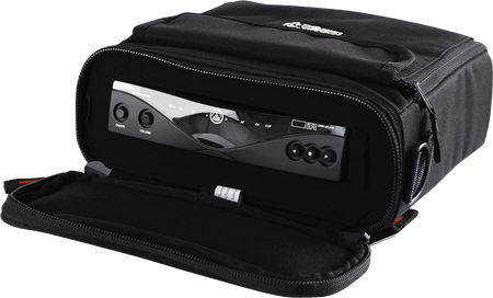 El diseño inteligente de la G-IN-EAR-SYSTEM no solo se centra en la protección, sino también en la comodidad y la eficiencia. Dispone de compartimentos específicos para cada componente del sistema, evitando que se muevan o dañen durante el transporte. Además, cuenta con un acceso superior con cremallera que permite extender la antena del transmisor sin necesidad de sacar el equipo de la bolsa, una característica esencial para pruebas de sonido rápidas y configuraciones eficientes. El exterior de nailon resistente asegura una larga vida útil y una protección fiable contra el desgaste diario.