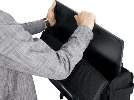 En el interior, el G-LCD-TOTE-MD incorpora un forro de tejido Tricot suave que protege la superficie de la pantalla frente a arañazos, incluso en paneles con acabado brillante. Las cremalleras dobles permiten abrir la funda casi por completo para cargar y descargar el monitor con facilidad, reduciendo el riesgo de golpes accidentales en los bordes. Su compartimento principal está dimensionado para la mayoría de monitores y televisores planos de 27" a 32", con unas medidas interiores aproximadas de 77,2 x 47,0 x 8,2 cm.