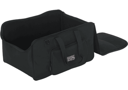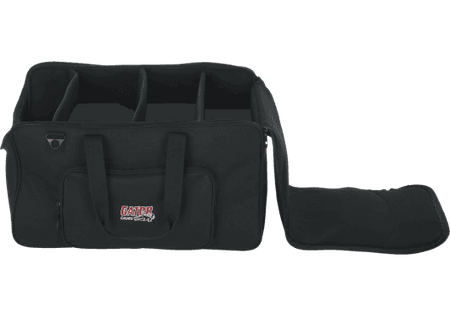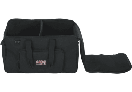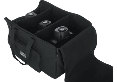 La Gator G-LIGHTBAG-2212 utiliza un tejido exterior de poliéster tipo nylon resistente, acolchado y preparado para soportar el roce continuo propio de la carretera y los montajes frecuentes. El interior está completamente forrado con material suave y acolchado, manteniendo los proyectores bien sujetos gracias a los divisores ajustables con cierre de gancho y bucle. Las cremalleras de doble cursor permiten abrir la tapa superior de forma amplia, y el bolsillo frontal con cremallera ofrece espacio suficiente para cables y pequeños accesorios. Su diseño ligero facilita el transporte incluso cuando la bolsa va cargada con cuatro focos y todo el cableado necesario.