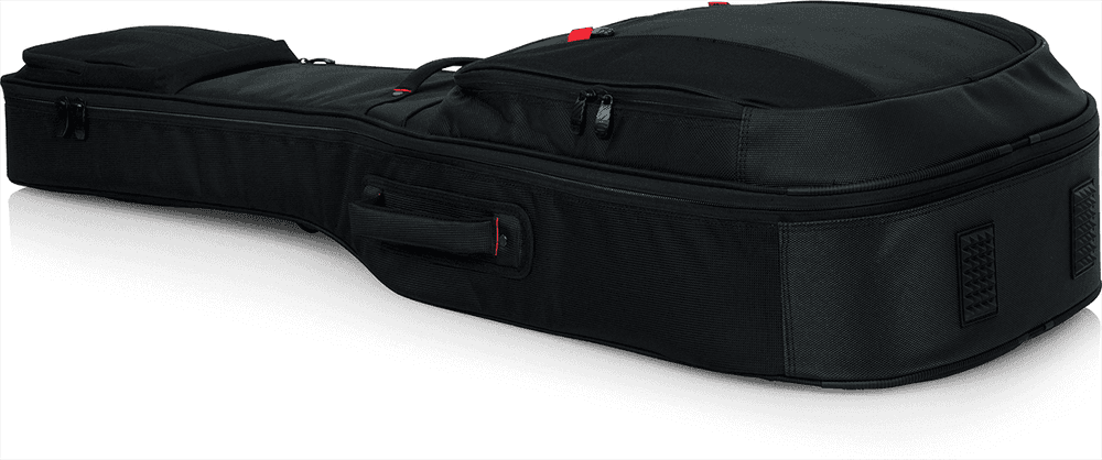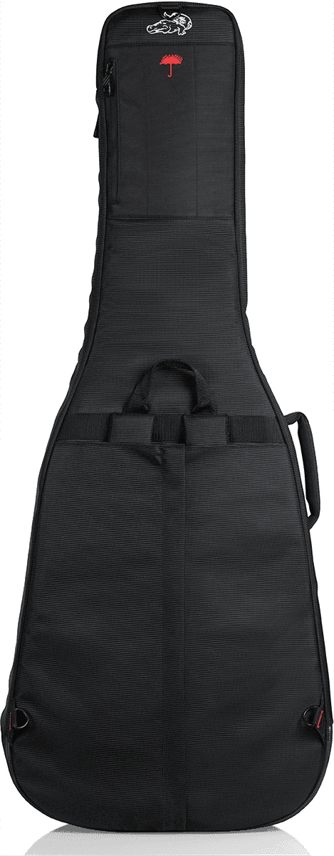 Funda blanda para guitarra acústica Gator G-PG-ACOUSTIC de la serie Pro-Go. Fabricada con exterior de nailon balístico y paredes con acolchado de espuma de 20 mm. Interior de micro-forro polar con bloque interno de absorción de impactos y soporte de mástil ajustable. Dispone de múltiples compartimentos de almacenamiento, incluyendo bolsillo para tablet y organizador de cables. Equipada con correas de mochila extraíbles y múltiples asas. Incluye funda impermeable integrada. Dimensiones interiores: 117.09 cm (largo total), 58.93 cm (largo de cuerpo), 13.97 cm (altura de cuerpo), 42.42 cm (ancho de cuerpo inferior).