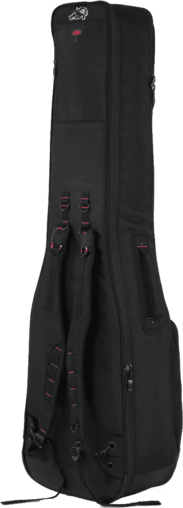 Funda blanda doble para dos bajos eléctricos, modelo G-PG-BASSX2 de la serie Pro-Go. Fabricada en nailon de alta resistencia con interior de microfibel y acolchado ultra grueso. Incluye bloque interno de absorción de impactos, soporte de mástil ajustable, funda impermeable integrada, correas de mochila extraíbles y múltiples bolsillos de almacenamiento con organizador de cables y compartimento para tablet. Asas de transporte reforzadas.