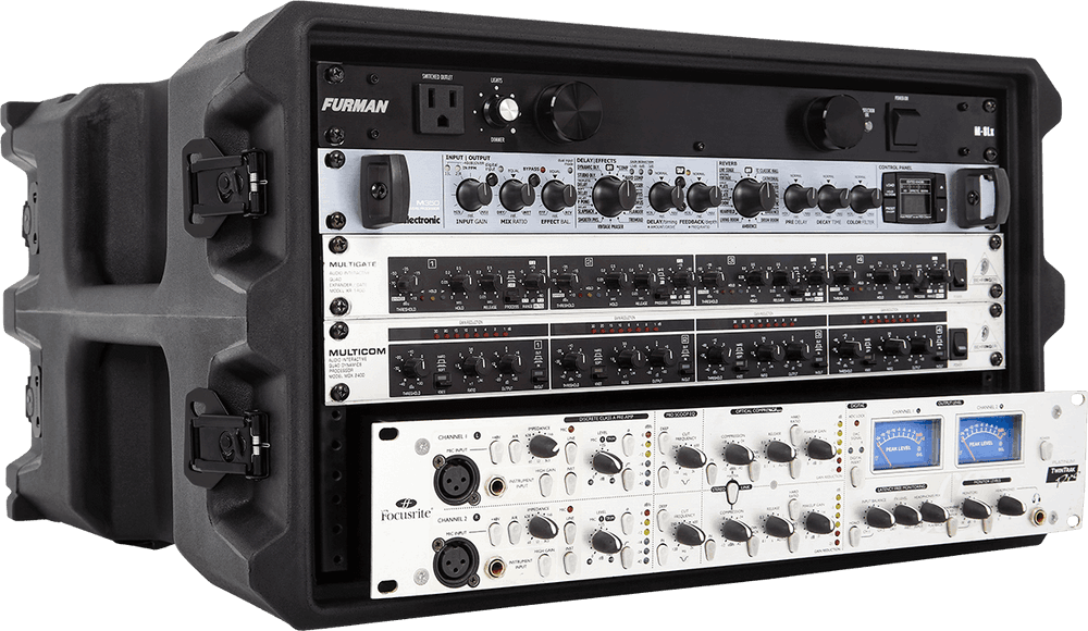 - Empresas de alquiler y producción: configuración de racks estándar de alquiler (FX, dinámicas, radiofrecuencia, distribución de señal) que puedan viajar entre distintos eventos con máxima seguridad.