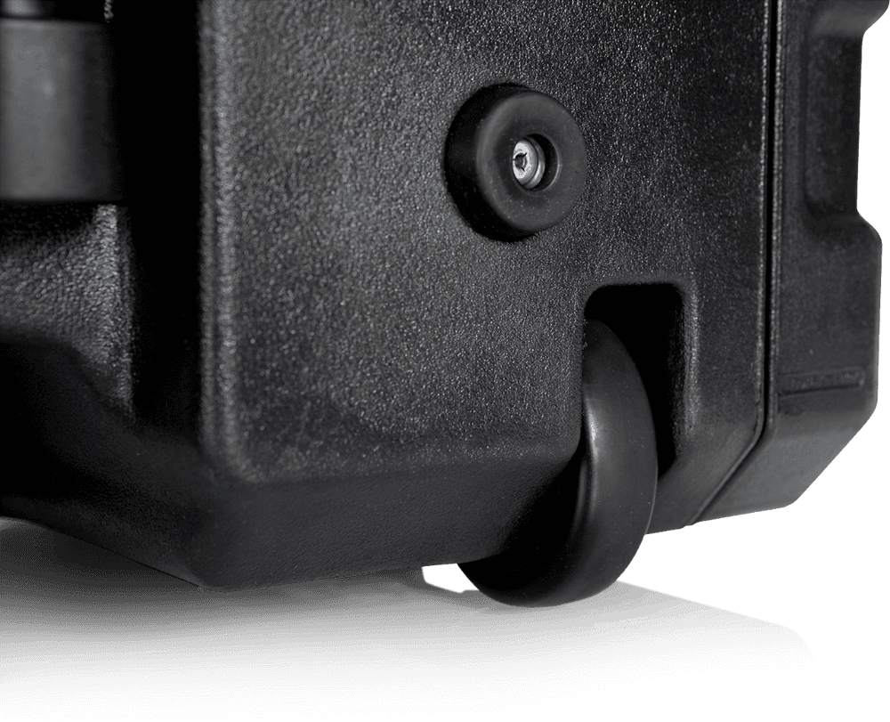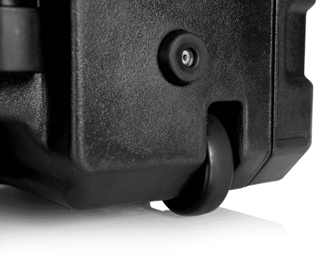- Construcción rotomoldeada de grado militar: carcasa en polietileno rotomoldeado prácticamente indestructible, diseñada para soportar giras exigentes.