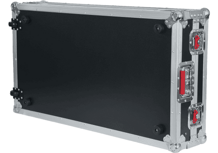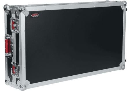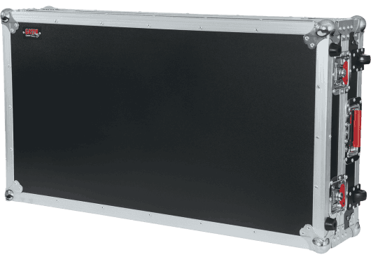 Flightcase profesional Gator G-TOURDSPDDJSZRZ para controladores Pioneer DDJ-RZ y DDJ-SZ, tipo road case de estilo touring. Construido en madera con acabado negro, interior acolchado en espuma EVA de alta densidad y plataforma deslizante superior para portátil. Panel frontal extraíble para acceso a conexiones de auriculares y controles frontales, e integración de pasamuros para cableado de alimentación y señal. Herrajes de grado comercial con cierres giratorios empotrados en color rojo, asas con muelle y esquinas metálicas reforzadas. Dimensiones internas aproximadas: 87,4 x 42,0 x 10,0 cm (largo x ancho x alto). Dimensiones externas aproximadas: 102,2 x 55,9 x 23,5 cm. Peso aproximado: 17,2 kg.