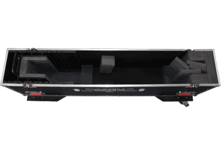 Para facilitar el transporte, el flightcase incluye 4 ruedas de gran tamaño (dos con freno y dos libres) montadas en la base, que permiten desplazar el conjunto con suavidad incluso cuando está totalmente cargado. Las asas empotradas con muelle y empuñadura de goma, repartidas en los laterales, aseguran un agarre cómodo en maniobras de carga y descarga. Los cierres giratorios empotrados tipo twist, con el habitual acabado rojo “Gator Signature”, garantizan un cierre firme y seguro, protegiendo el interior frente a polvo y salpicaduras.