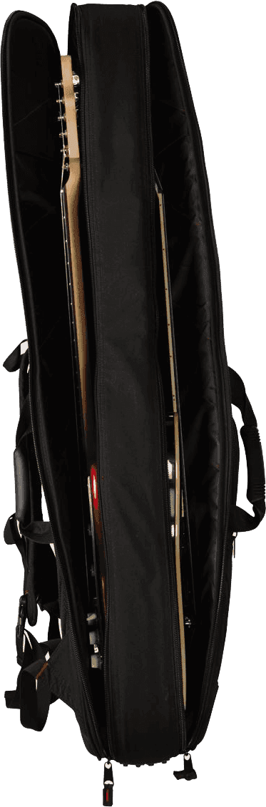 Funda blanda (Gig Bag) de la serie 4G para transporte simultáneo de dos guitarras eléctricas. Fabricada en nailon de alta resistencia con acolchado de espuma GFLEX de 20 mm en todas las caras. Incorpora refuerzos internos de protección en las zonas de puente y clavijero para evitar abrasión. Dispone de correas tipo mochila ajustables y acolchadas, respaldo ergonómico contorneado y asa de transporte reforzada. Incluye bolsillo exterior de gran capacidad y sistema de tirador de cremallera Pick-Clip con soporte para púa. Dimensiones internas adaptadas para cuerpos sólidos estándar.
