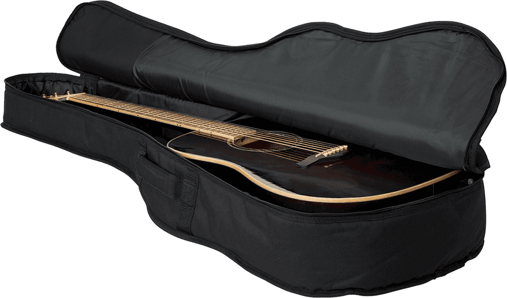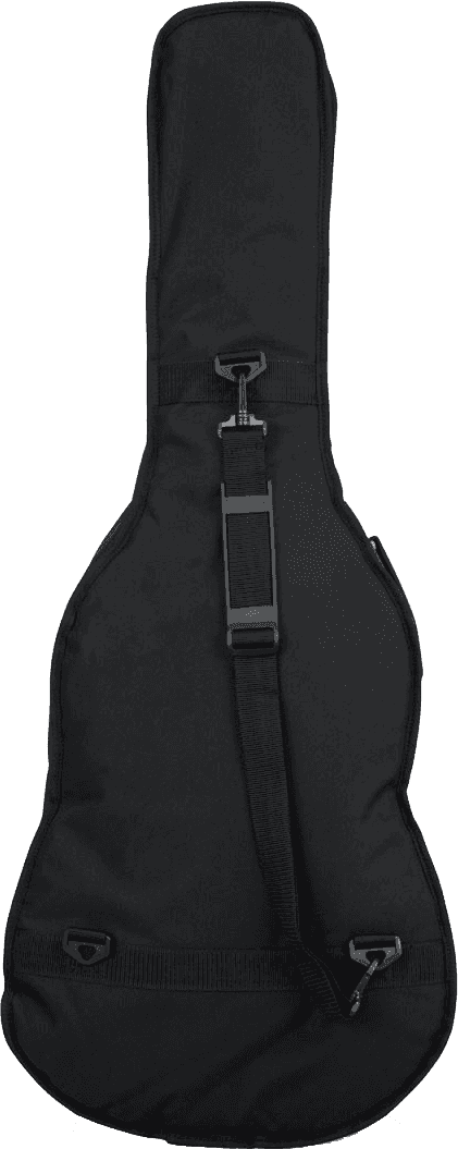 Funda para guitarra acústica tipo Dreadnought. Exterior fabricado en nylon 600 Denier resistente al agua. Interior con acolchado de espuma de 10 mm y refuerzos para mástil y clavijero. Dispone de un bolsillo exterior para accesorios con cierre de cremallera. Sistema de transporte mediante asa de nylon reforzada y correas ajustables tipo mochila. Cierres de cremallera de alta resistencia. Diseñada para guitarras acústicas de tamaño estándar Dreadnought.