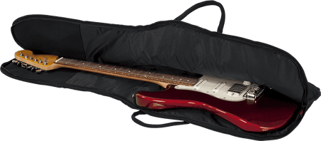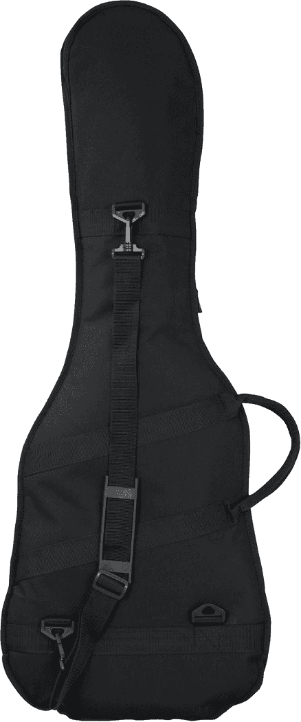 Funda para guitarra eléctrica fabricada con exterior de Nylon 600 Denier resistente al agua. Interior de nylon con acolchado de espuma de 10 mm. Cuenta con refuerzos internos en la zona del clavijero y el puente. Dispone de un bolsillo exterior para accesorios, un asa de transporte lateral y dos correas tipo mochila ajustables. El cierre es mediante cremallera. Sus dimensiones interiores son 1022,4 mm de largo total, 378 mm de ancho inferior del cuerpo y 88,9 mm de altura.