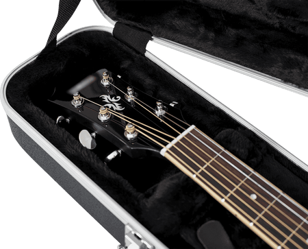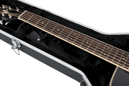 Estuche rígido para guitarra acústica con formato APX. Carcasa exterior fabricada en plástico ABS moldeado. Perfil de aluminio de alta resistencia en los bordes. Interior con núcleo de espuma EPS y forro de felpa. Soporte para el mástil y compartimento interior para accesorios. Asa de transporte atornillada y cierres cromados, uno de ellos con cerradura.