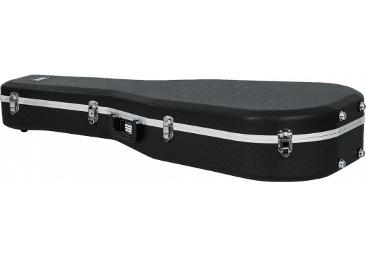 Estuche rígido para guitarra acústica tipo Dreadnought. Carcasa exterior fabricada en plástico ABS moldeado de alta resistencia. Interior conformado por un núcleo de espuma EPS y forro de felpa suave. Perímetro reforzado con una cenefa de aluminio de alta resistencia. Incorpora asa de transporte atornillada y pestillos metálicos cromados, uno de ellos con cerradura. Cuenta con un compartimento interno para almacenamiento de accesorios.
