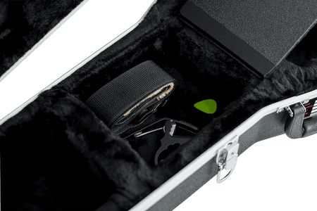 - Compartimento para Accesorios: Dispone de un espacioso compartimento interior, ideal para guardar cuerdas, afinadores, púas, cejillas y otros accesorios esenciales.