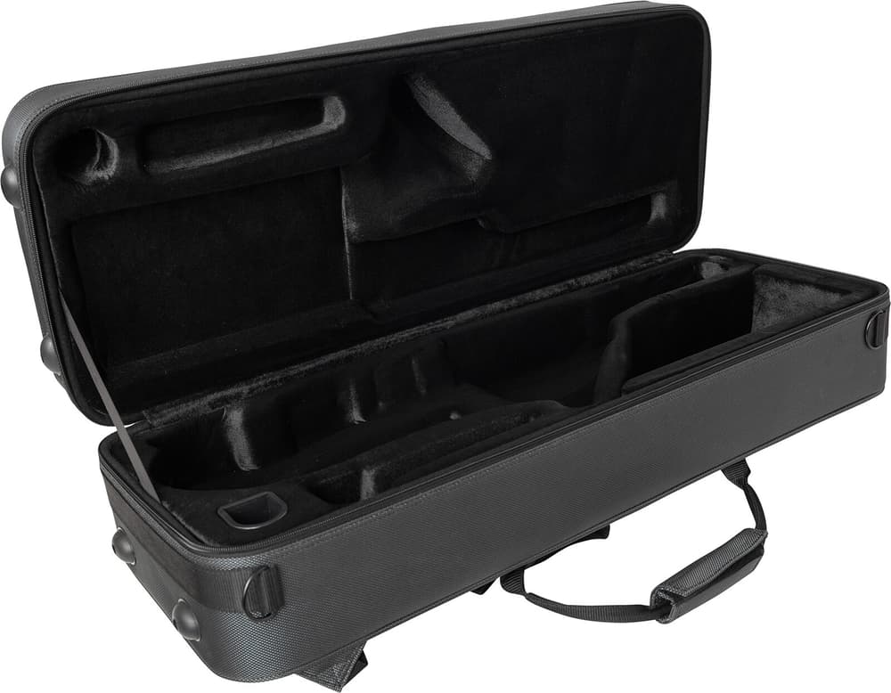El núcleo de EPS rígido proporciona una base muy estable frente a golpes y caídas moderadas, mientras que el interior moldeado y forrado de felpa/microfibra abraza el saxofón alto en todos sus puntos clave (cuerpo, campana y tudel), reduciendo movimientos internos y evitando marcas en el lacado. El diseño rectangular facilita el apilado, el almacenamiento y su colocación en maleteros o compartimentos de transporte.