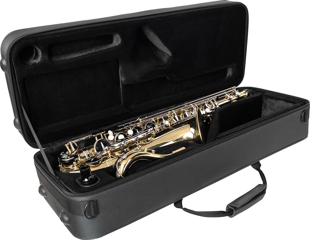 - Interior moldeado: nido contorneado que se adapta a la forma del saxofón alto y lo mantiene firmemente en su sitio.