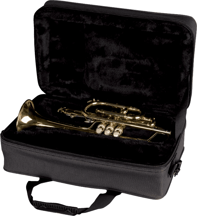 En el interior, la corneta descansa sobre un nido de espuma EPS densa recubierta de molleton/felpa suave, que envuelve el instrumento y lo mantiene firmemente sujeto sin dañar el acabado. Este diseño polyfoam rígido absorbe impactos y vibraciones mucho mejor que una funda acolchada convencional, reduciendo el riesgo de golpes en tudel, bomba, pistones y campana durante el transporte.