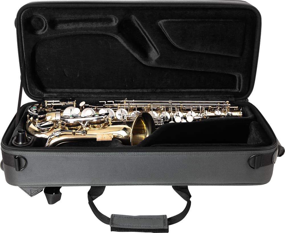 • Nido interior moldeado con contorno específico para saxofón tenor, que acuna el instrumento y limita los movimientos durante el transporte.