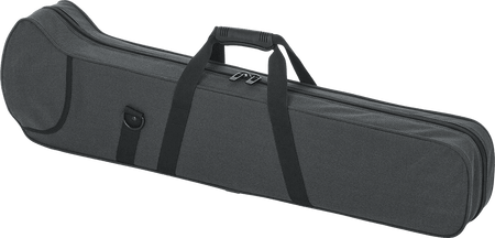 El Gator GL-TROMBONE es un estuche semirrígido ligero (softcase) diseñado para ofrecer un nivel de protección muy superior a una funda blanda tradicional, pero con mucho menos peso que un estuche rígido clásico. Su carcasa combina un exterior de nylon 600D gris/negro muy resistente con un núcleo de espuma EPS de alta densidad y un interior moldeado recubierto de felpa suave, creando un entorno seguro para trombones tenores Sib, tanto rectos como con transpositor en Fa (F-attachment), siempre que encajen en las medidas estándar.