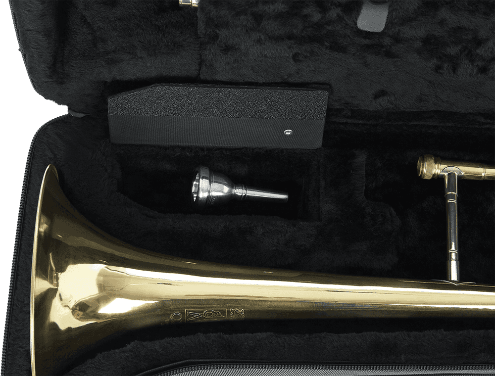 - Interior moldeado y recubierto de felpa/polar suave, diseñado para seguir la forma del trombón y proteger el lacado y el metal frente a golpes y arañazos.