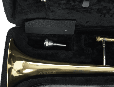 - Todo el equipo en un solo bulto: gracias al amplio bolsillo exterior y a los compartimentos internos, es posible llevar el trombón, boquillas, sordinas, limpiadores, atril plegable y partituras sin necesidad de bolsas adicionales.