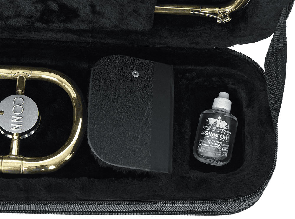 - Alojamiento interno para F-attachment, pensado para trombones con transpositor que requieran espacio adicional en la zona de la campana/codo.