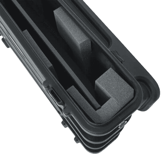 - Protección superior frente a golpes y vibraciones: la carcasa de polietileno roto-moldeado y el interior acolchado ofrecen una defensa muy eficaz frente al trato diario en montajes, vehículos y escenarios.