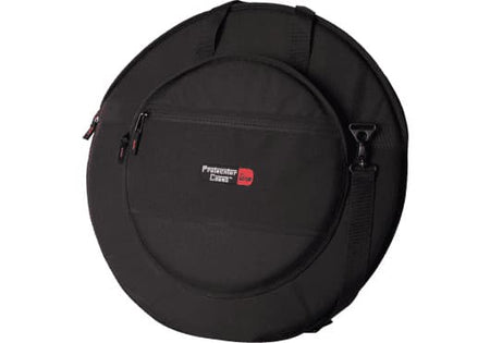 Funda para platos Gator GP-12, tipo slinger-style. Diseñada para transportar hasta 8 platos de hasta 22" de diámetro. Exterior en nylon 600D con espuma protectora de aproximadamente 30 mm. Interior acolchado con divisores individuales para separar cada plato. Incluye correa de hombro cómoda y ajustable, asa de mano reforzada y cierre mediante cremallera perimetral. Dimensiones exteriores aproximadas: 635 x 635 x 89 mm (diámetro x diámetro x grosor). Peso aproximado: 2,7 kg. Color negro.