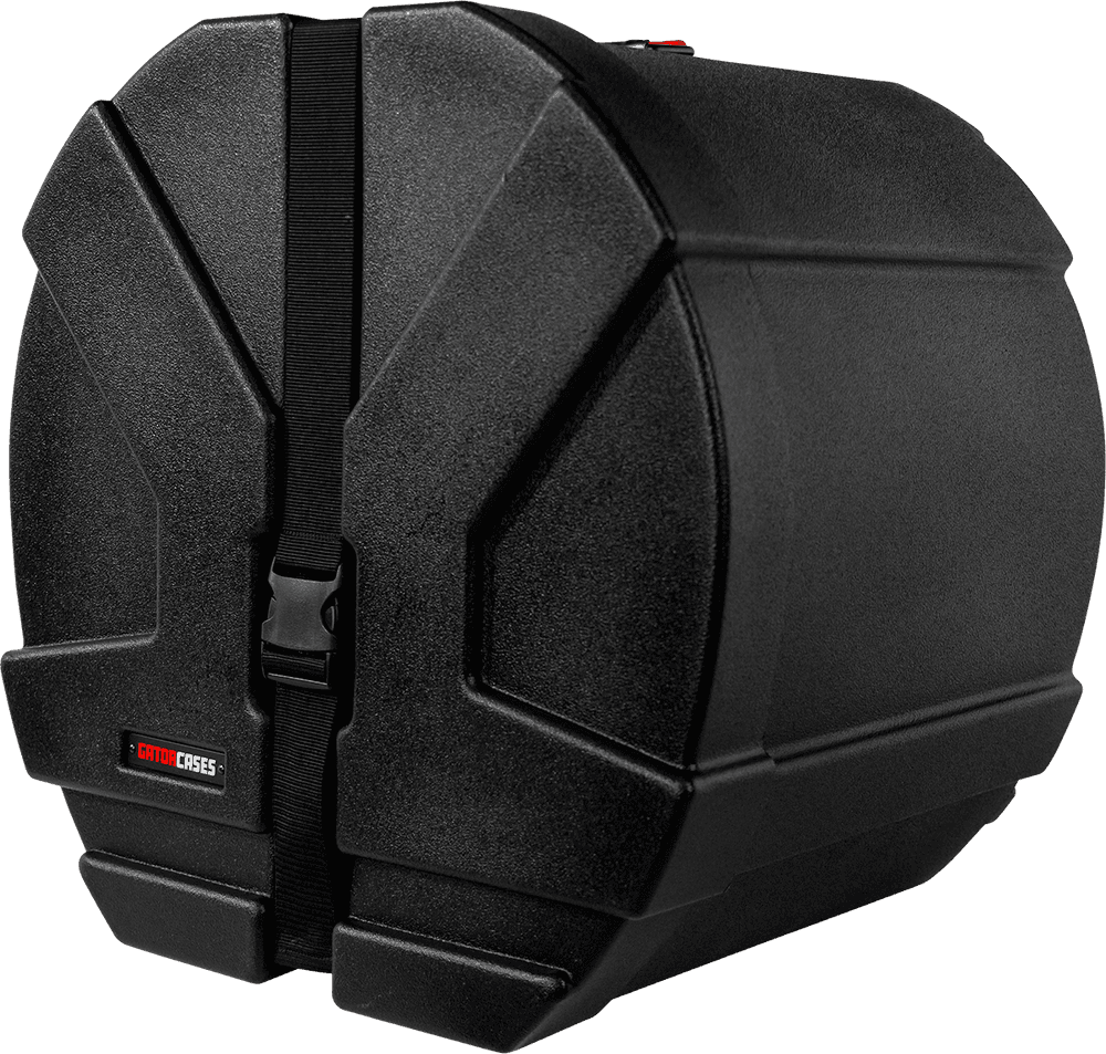 Estuche rígido para tom base de 18" x 16". Construcción exterior en plástico de alta densidad moldeado por rotación. Interior forrado en terciopelo acolchado con doble costura. Sistema de apilamiento con canales de enclavamiento. Asa de transporte con resorte y tope de 90 grados. Cierre mediante correa de nylon de alta resistencia y hebilla de tensión. Dimensiones interiores: 533 x 533 x 457 mm. Peso: 5,53 kg.