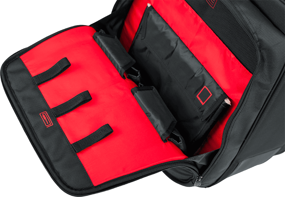 - Organización total del equipo: los múltiples bolsillos y compartimentos mantienen cables, afinador, tablet, partituras y accesorios siempre junto a las guitarras.