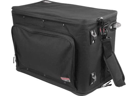 El Gator GR-RACKBAG-4UW es un softcase reforzado para rack de 4 unidades (4U) de 19" con trolley y ruedas integradas, diseñado para quienes necesitan la protección y organización de un rack, pero en un formato ligero, portátil y muy cómodo de transportar. Su combinación de estructura interna de polietileno y aluminio con exterior en nylon 600 Denier lo convierte en una excelente solución para procesadores de efectos, módulos de sonido, equipos de grabación, sistemas inalámbricos y otros dispositivos en formato rack.