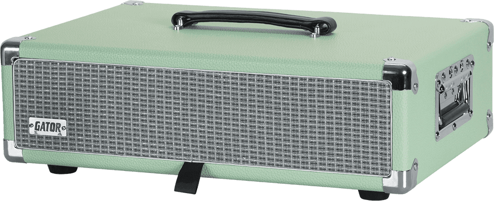 El Gator GR-RETRORACK-2SG es un estuche de rack de 2 unidades (2U) y formato 19" con diseño inspirado en los clásicos amplificadores de guitarra. Fabricado en madera maciza y revestido en un elegante acabado Seafoam Green (verde espuma de mar), ofrece una combinación poco habitual de estética vintage y funcionalidad moderna para alojar modeladores de amplificador, efectos en rack y equipos de estudio.