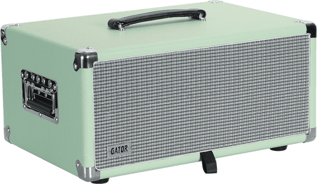 El Gator GR-RETRORACK-4SG es un estuche rack de 4 unidades para equipos de 19", diseñado con un marcado estilo de amplificador vintage y acabado en color verde Seafoam (surf green). Combina la estética clásica de un combo de guitarra con la funcionalidad de un rack profesional de estudio, ofreciendo 4U de espacio para alojar modeladores de amplificador, multiefectos, previos, interfaces y otros procesadores de audio de formato estándar.