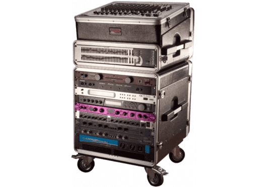 - Backline para bandas y DJs: base rodante para alojar procesadores, sistemas inalámbricos, distribución de señal y otros dispositivos que acompañan a sets de DJ o bandas en directo.
