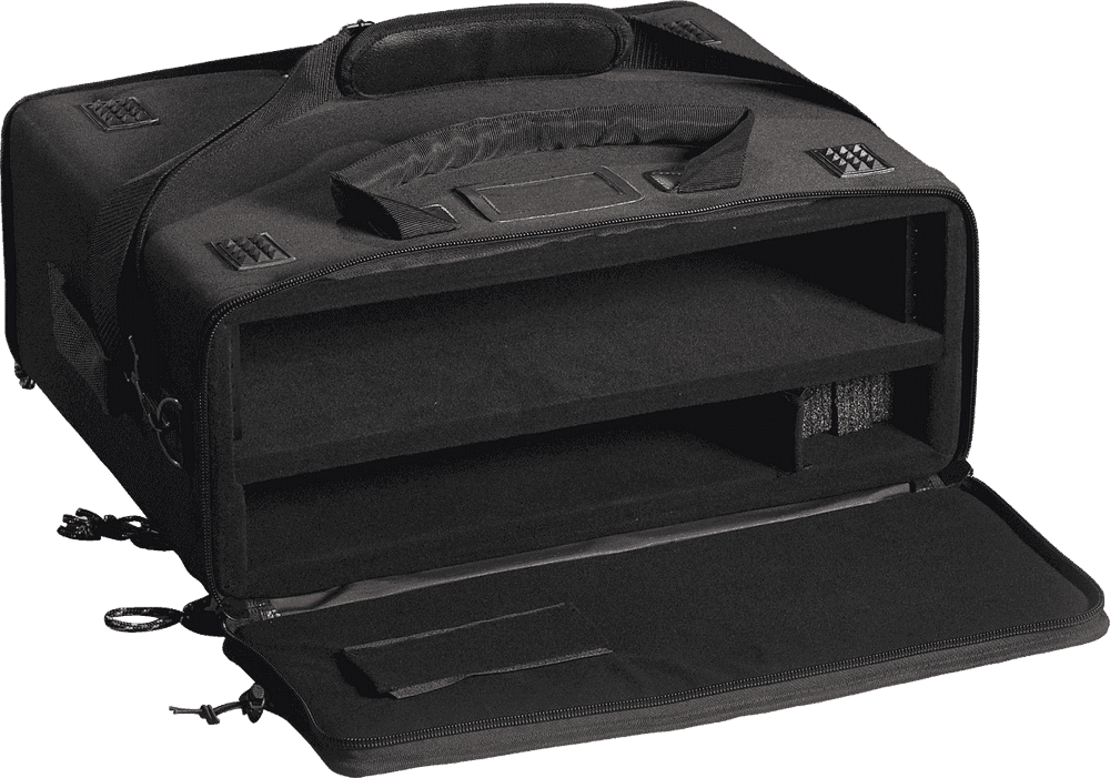 - Todo el estudio portátil en una sola funda: permite llevar ordenador portátil + interfaz de audio + unidad de disco u otro hardware 19" en un único elemento, simplificando la logística.