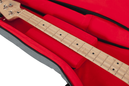 • Sistema de Soporte Ajustable: Incluye un sistema de acolchado interior de tres puntos, ajustable y extraíble, que inmoviliza y protege las áreas más vulnerables del bajo: el clavijero, el mástil y la base del cuerpo.
