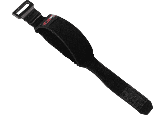 - Material elástico con cinta de cierre tipo velcro (hook-and-loop) para ajustar el nivel de amortiguación.