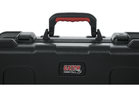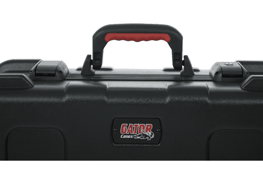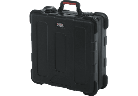 Estuche rígido para proyector de vídeo Gator GTSA-AVPROJECT, construcción en polietileno moldeado tipo ATA, interior de espuma EPS de alta densidad con acolchado de aproximadamente 2,5 cm, pestillo de cierre con bloqueo aceptado por TSA, asa ergonómica Ergo-Grip, herrajes metálicos con recubrimiento en polvo negro, cenefa continua perimetral y compartimento inferior oculto para cables y accesorios. Dimensiones interiores aproximadas: 45,7 x 45,7 x 15,2 cm. Dimensiones exteriores aproximadas: 55,2 x 22,2 x 22,2 cm. Peso aproximado: 5,7 kg. Color negro.
