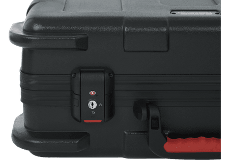 Este estuche para proyector Gator GTSA-AVPROJECT forma parte de la serie TSA de la marca, e incorpora cierres con bloqueo aceptado por la TSA, lo que lo convierte en una solución especialmente adecuada para viajes en avión. La carcasa rígida de polietileno casi indestructible se combina con una cenefa continua y herrajes recubiertos en negro que aseguran un cierre firme y estable en todo el contorno, minimizando aperturas accidentales y aumentando la protección frente a salpicaduras y polvo.