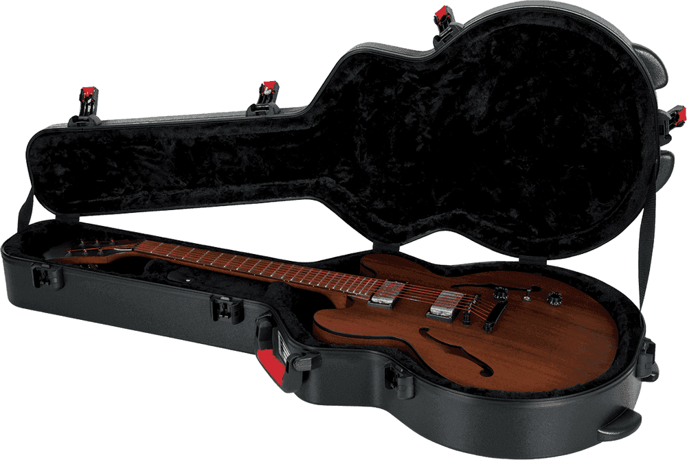• Estuche rígido moldeado ATA de la serie Gator GTSA para guitarras semi hollow tipo 335.