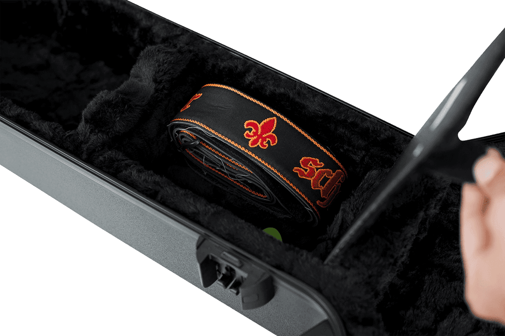 • Máxima estabilidad del instrumento en el interior: el nido de espuma EPS y la cuna de mástil extendida mantienen la guitarra firmemente sujeta, reduciendo el riesgo de daños en mástil y pala.